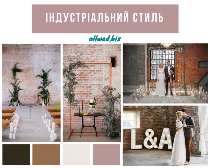Любиш сучасні мегаполіси? Тоді весілля в індустріальному стилі тобі підійде ідеально. Металеві конструкції, лофтове приміщення — ідеальний антураж для церемонії.