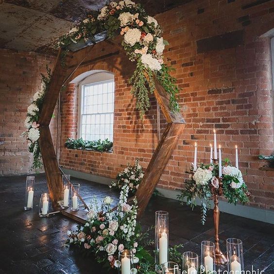 Самые популярные формы свадебных арок: треугольник и шестиугольник (гексагон).