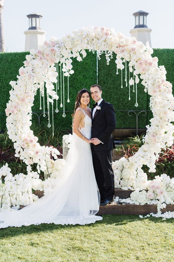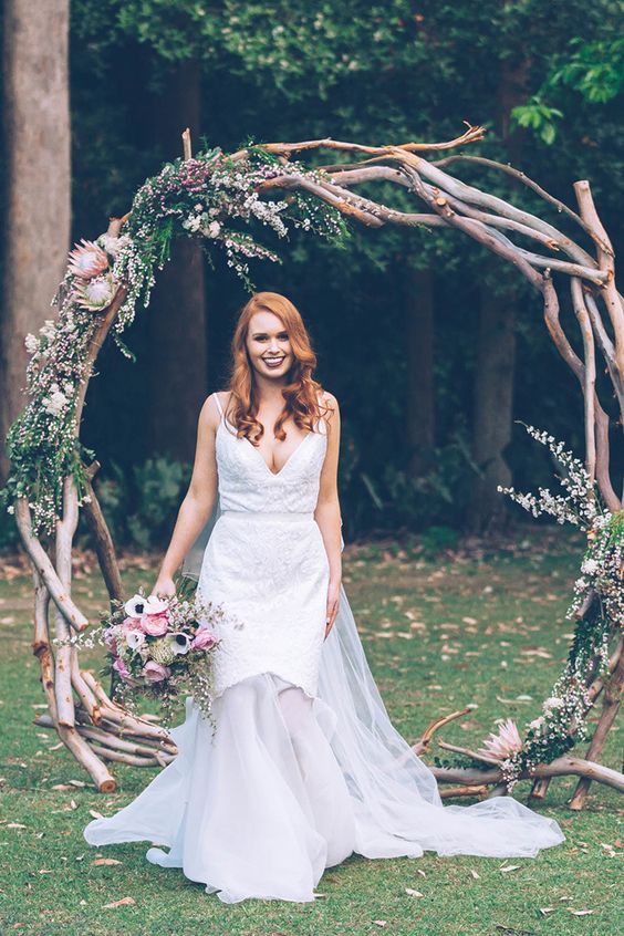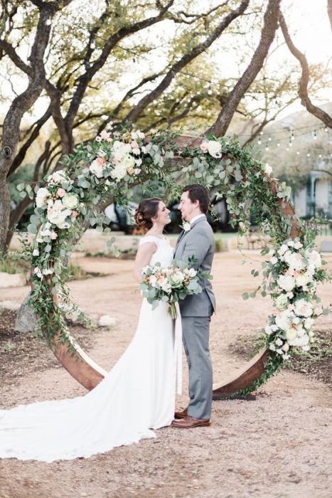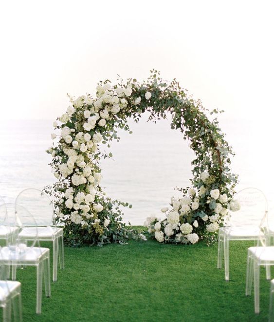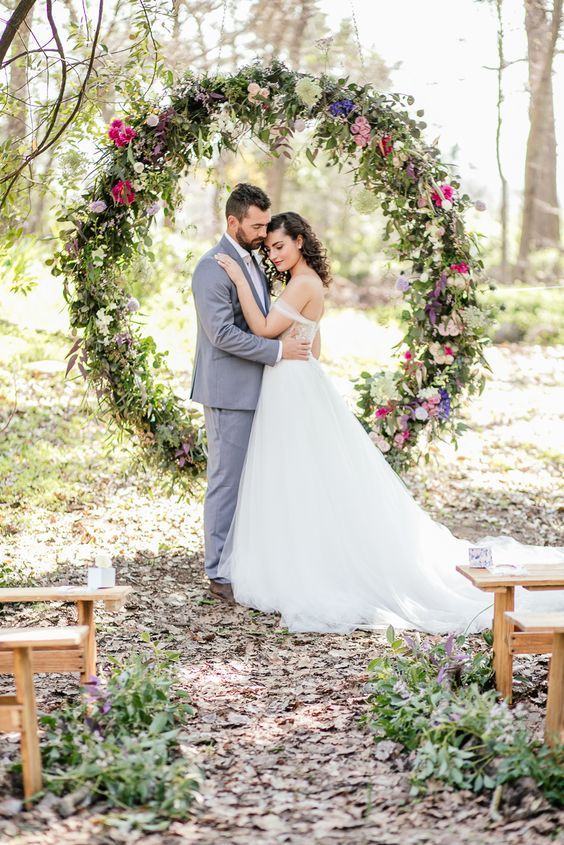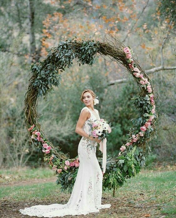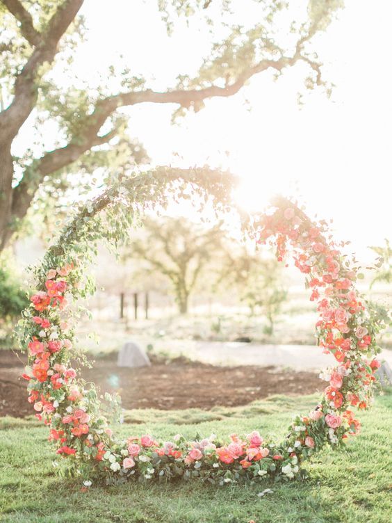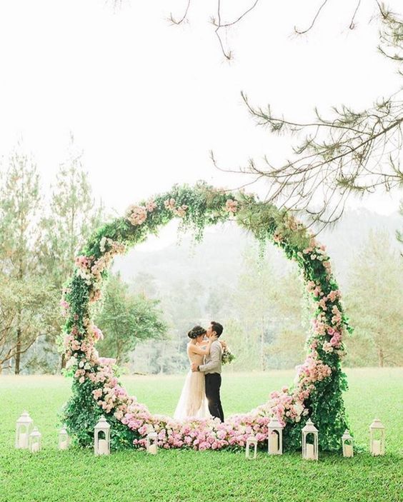 Если вам не по душе острые углы треугольных арок, тогда вам может понравится круглая свадебная арка — она поддерживает модные тренды и при этом выглядит очень нежно.