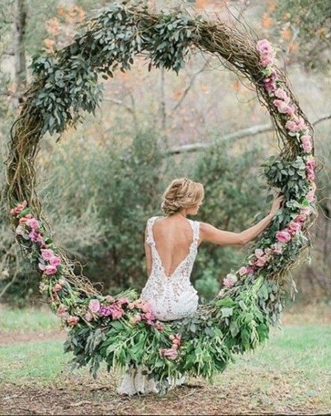 С такой красивой и оригинальной аркой можно и не устраивать отдельно фотозону — круглая арка ее прекрасно заменит.