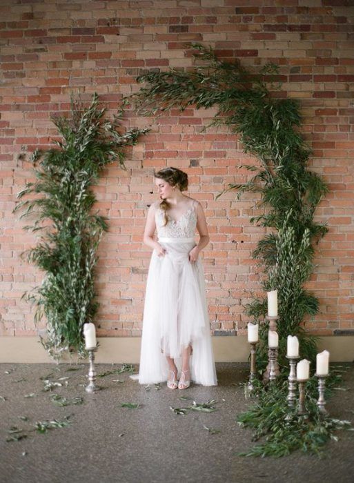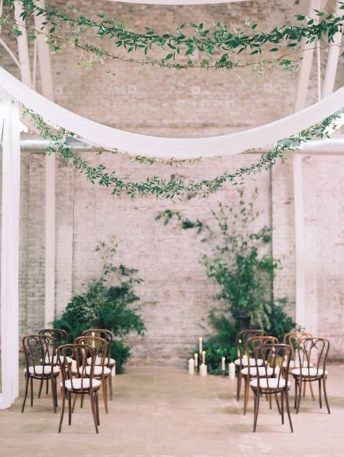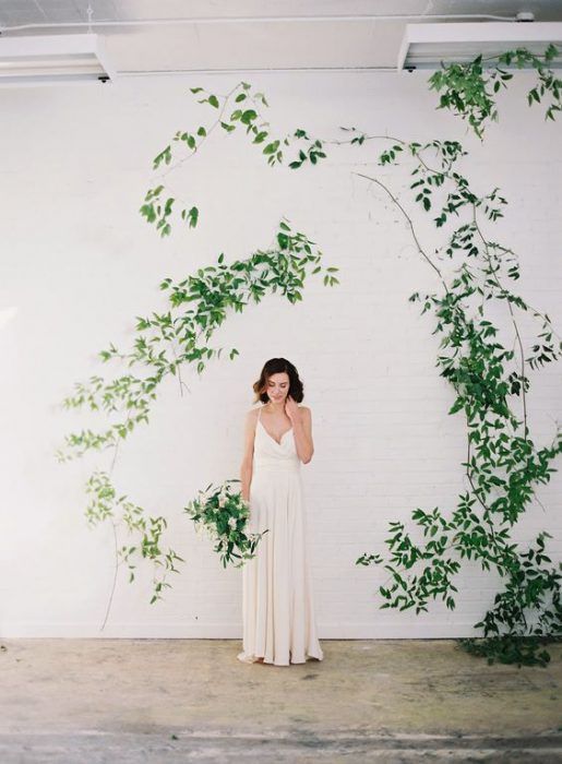 Зеленый тренд не утратил актуальности и в этом году. Забудьте о пышных флористических арках — сейчас достаточно несколько зеленых веток и белый фон. Зеленый минимализм в тренде!