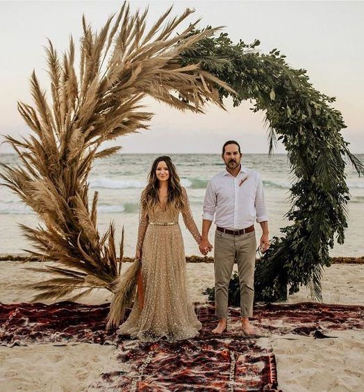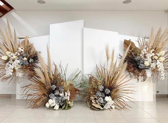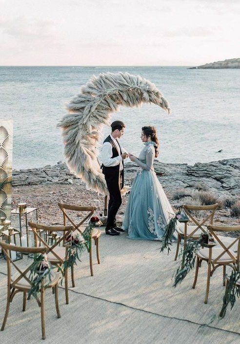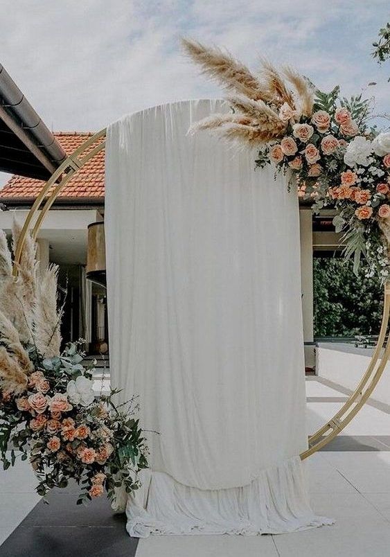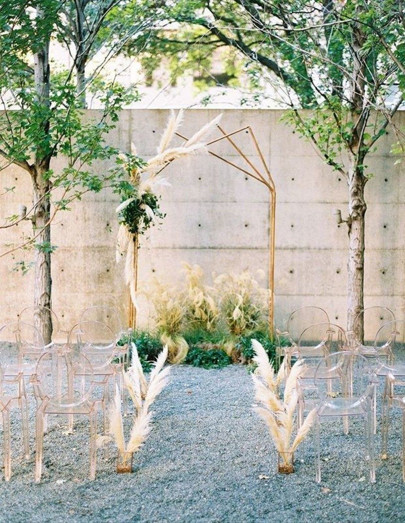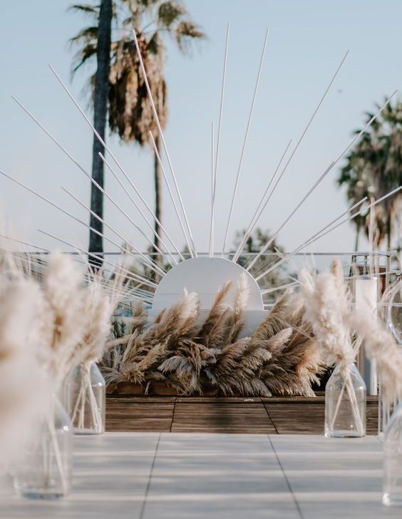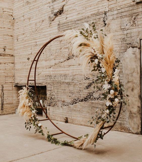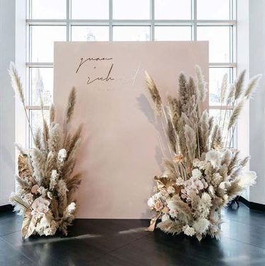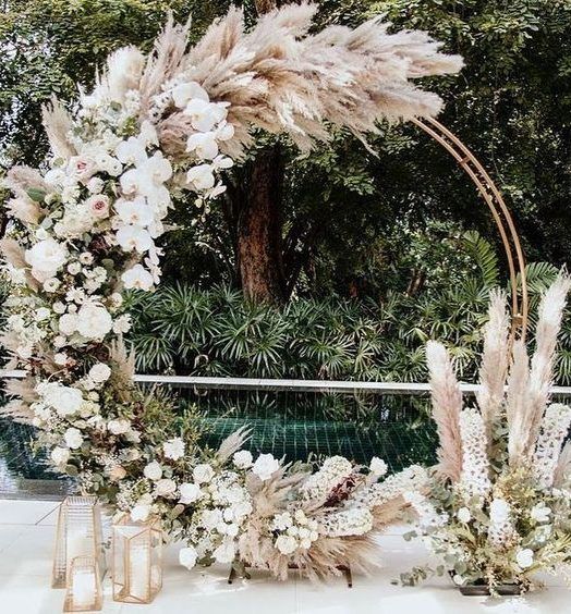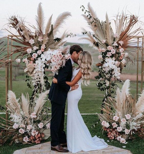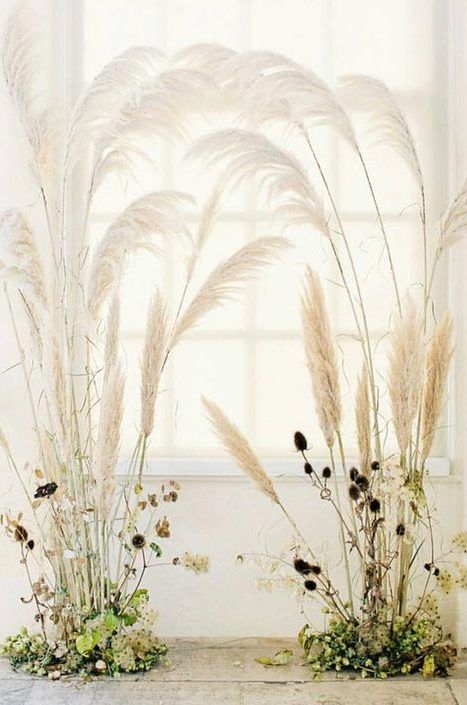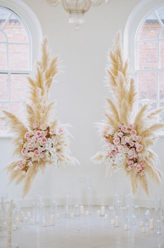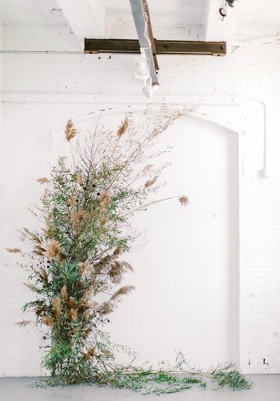 Пампасная трава тоже будет присутствовать в декоре свадебных арок. Она может быть как основным оформлением, так и сочетаться с цветами и зеленью. Веточки пампасной травы чудесно подходят для свадьбы в любом стиле: от изящной классики до Urban Chic.