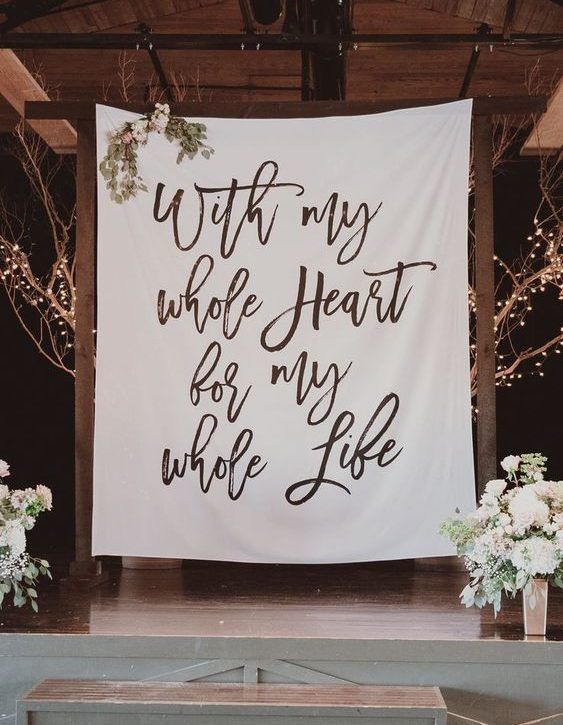 Баннеры. Тканевый баннер с красивой и важной для вас фразой станет чудесной альтернативой традиционной свадебной арке. А еще они отлично подходят для свадьбы в помещении (особенно, если какую-то часть помещения нужно закрыть).