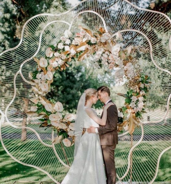 Необычные арки. Поскольку основный свадебный тренд 2020 года — это индивидуальная история пары, то и оригинальные арки, которые помогают ее рассказать, будут актуальны.