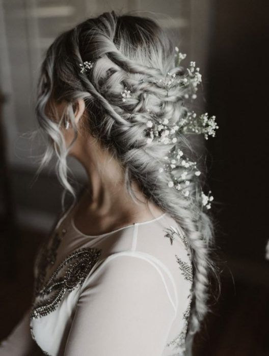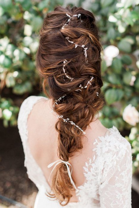 Если вы хотите косу в качестве свадебной прически, то остановите свой выбор на плетении «рыбий хвост» — именно оно сейчас в тренде. И обязательно украсьте прическу красивыми заколками.
