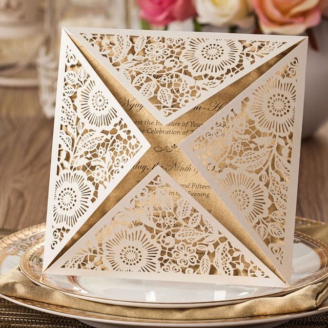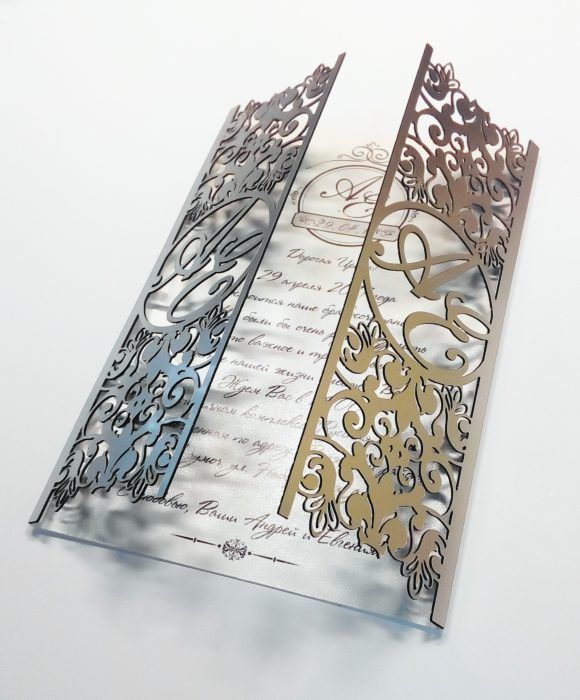 Резка выполняется лазерным лучом, что позволяет делать мельчайшие детали самых необыкновенных узоров. Такое приглашение будет иметь вау-эффект, не сомневайтесь.