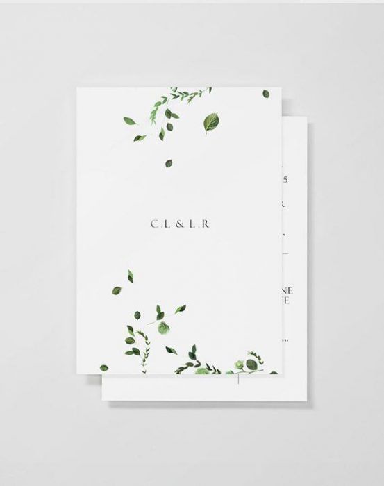 Если ваш девиз «Краткость — сестра таланта.», то этот стиль вам непременно подойдет.  Простой небольшой элемент, будь то вихрь, линии или веточка маслин — станут лейтмотивом всей вашей свадьбы.