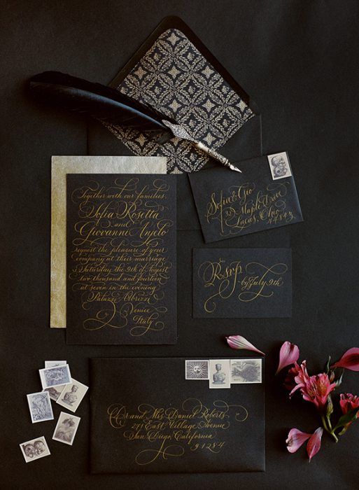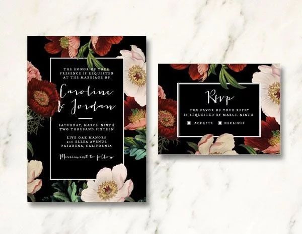 Свадебное пригласительное на темном фоне? Вы серьезно? — скажете вы. Да, мы не шутим. Согласитесь, получив подобное приглашение, вы были бы заинтригованы, какой же будет сама свадьба. Темнота скрывает нечто таинственное, а в данном случае, тайну двух любящих сердец. Выбрать этот стиль — смелый шаг, но он определенно произведет впечатление.