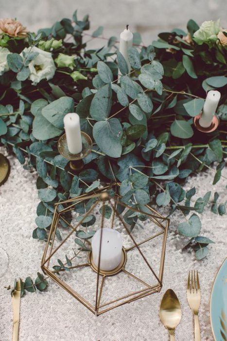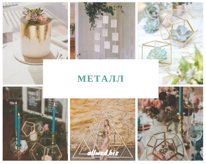 Если вы внимательно рассматривали фото, то заметили, что все названые выше тренды тесно переплетаются. Я бы назвала это минималистичной свадьбой в стиле ботаник с металлической геометрией :).