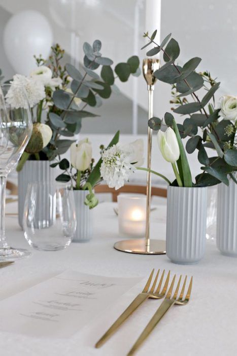 Минимализм прослеживается и в оформлении столов — вместо больших флористических композиций в центре стола, теперь декораторы используют отдельные ветки или маленькие вазы.