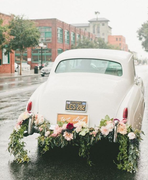 Можно обратиться за «помощью» к нашим западным соседям и прицепить к заднему бамперу жестяные банки, которые своим веселым звоном будут оповещать округу о вашем радостном дне!