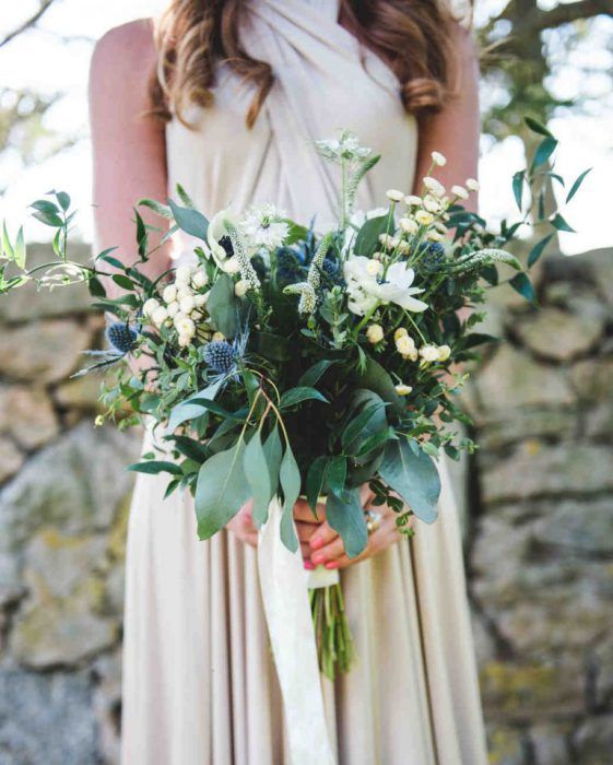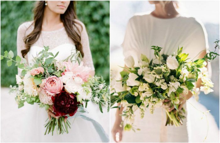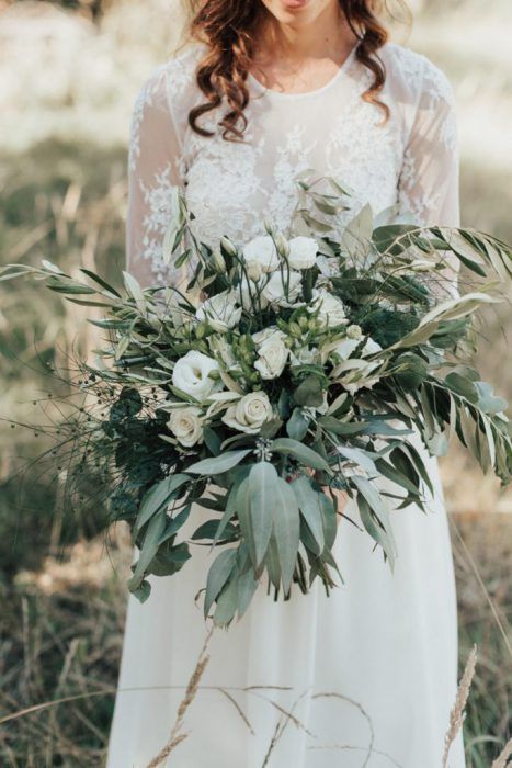 Если в оформлении представить листья папоротника легко, то букет, в котором минимум цветов и только в качестве акцентов — достаточно сложно. Здесь мнения невест категоричны — они либо обожают такие букеты, либо не воспринимают их как таковые.