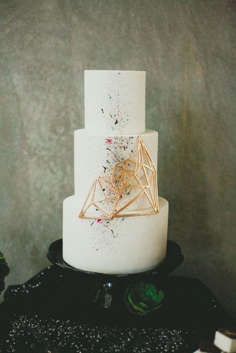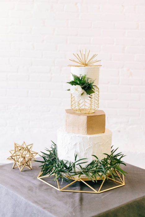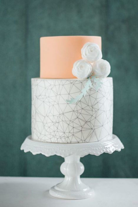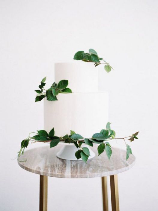 А еще в этом свадебном сезоне торт в стиле минимализм может подчеркивать другие тренды: ботаник (зелень) или геометрию.
