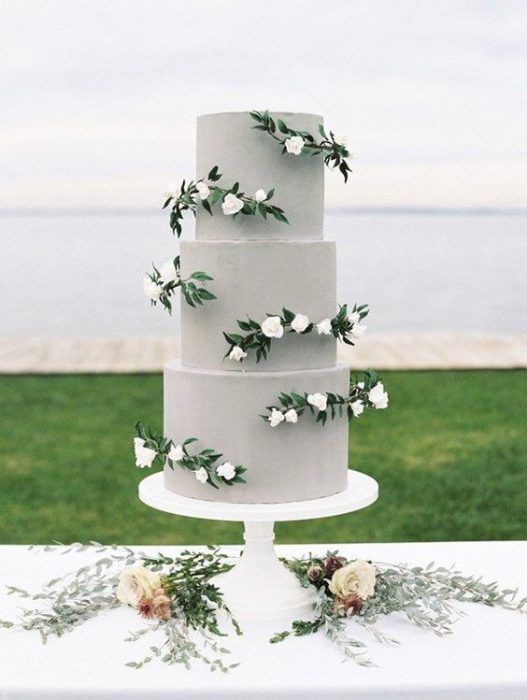 Кстати, торт в стиле минимализм — это не обязательно строго. Такой торт может быть и очень романтичным, нежным. Посмотрите на примеры ниже: