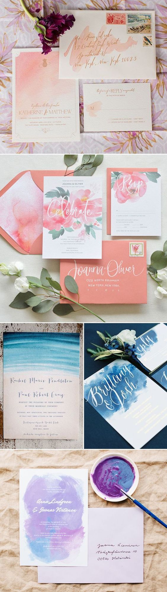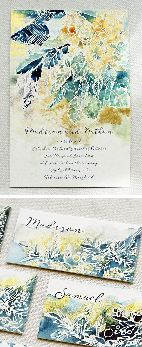 Акварельные приглашения на свадьбу. Одна из самых популярных сейчас техник создания пригласительных — акварельная. Мягкие тона и красивые узоры создают романтичное настроение и как нельзя лучше подходят для приглашения на свадьбу.