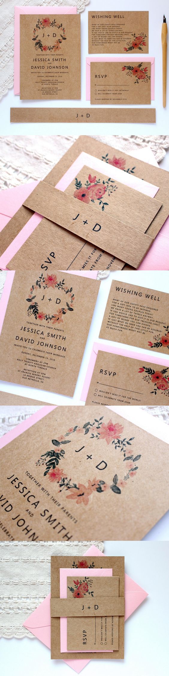 А вот посмотрите, как цветочный тренд можно применить на пригласительных для свадьбы в стиле рустик: