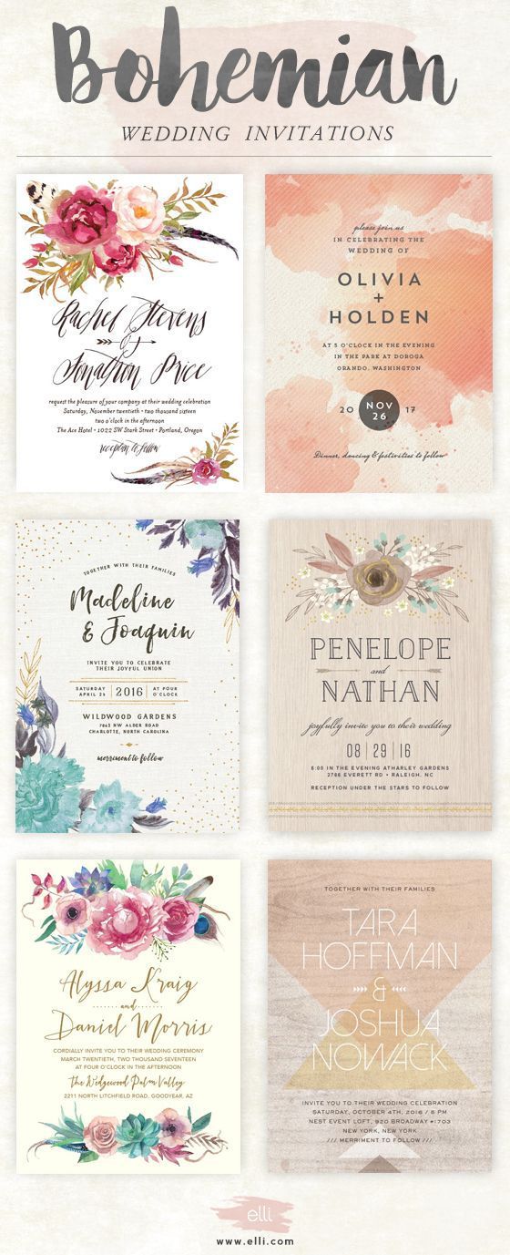 Стиль бохо. Уже не первый сезон этот стиль очень популярен у невест и свадебных организаторов. Посмотрите, какие пригласительные можно сделать, если вы хотите устроить свадьбы в стиле бохо: