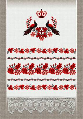 - пара голубей — символ крепкой любви. Кроме голубей на свадебных рушниках может изображаться ласточка — крепкое семейное хозяйство, жар-птица или павлин — семейное счастье;