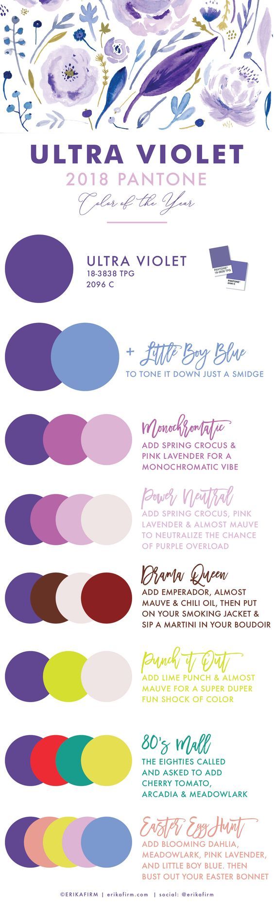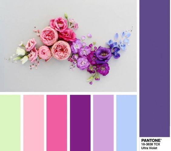 Цветовые сочетания. Ультафиолет — довольно сложный оттенок, поэтому его непросто сочетать с другими цветами. Легче всего комбинировать его с другими оттенками фиолетового, розового и синего.