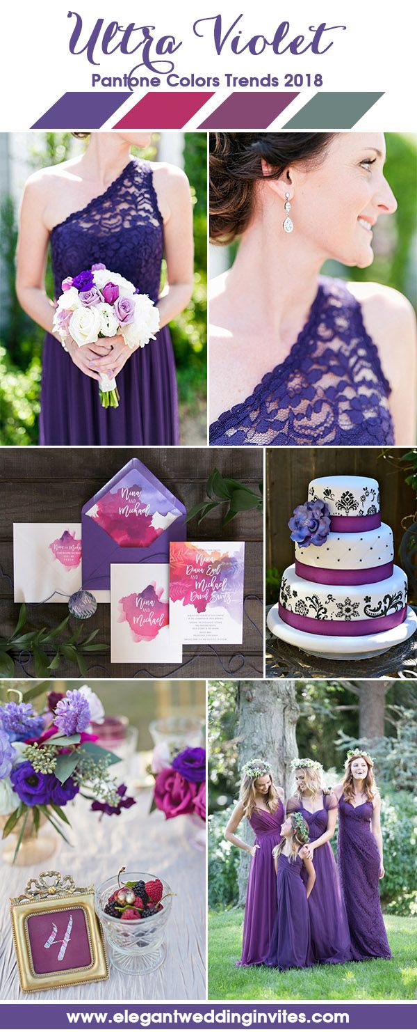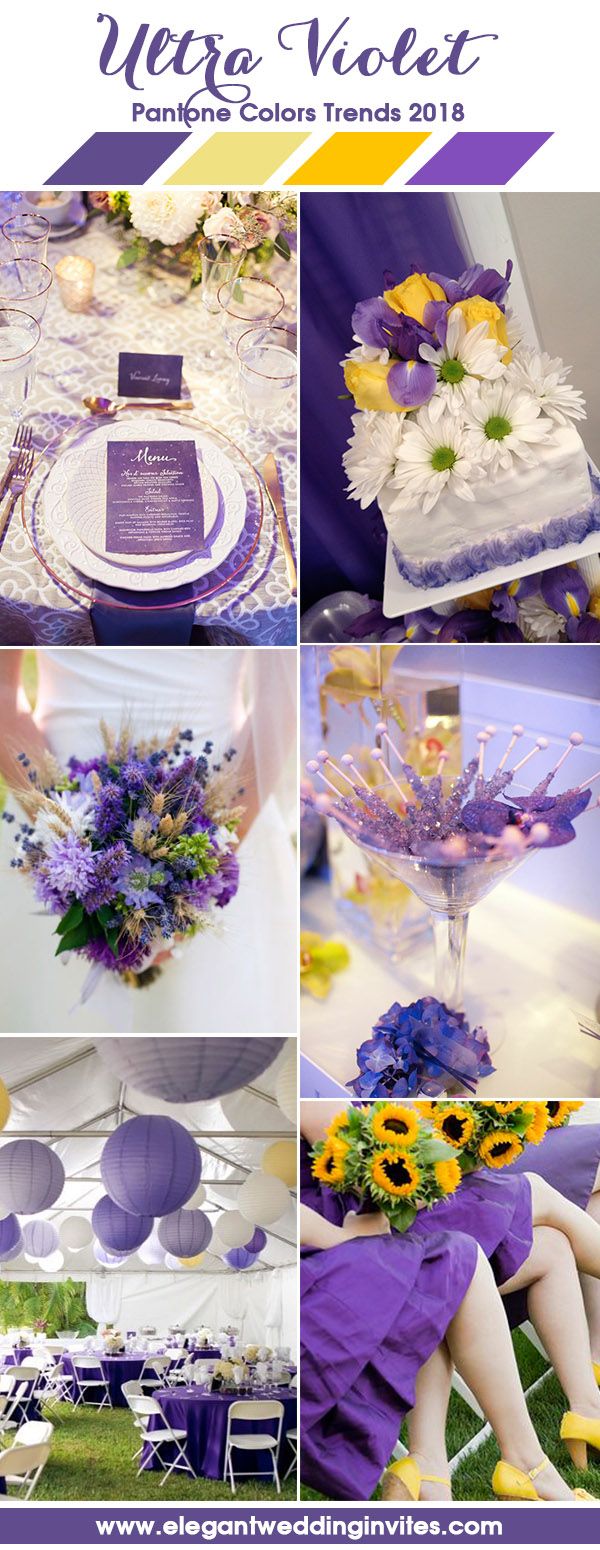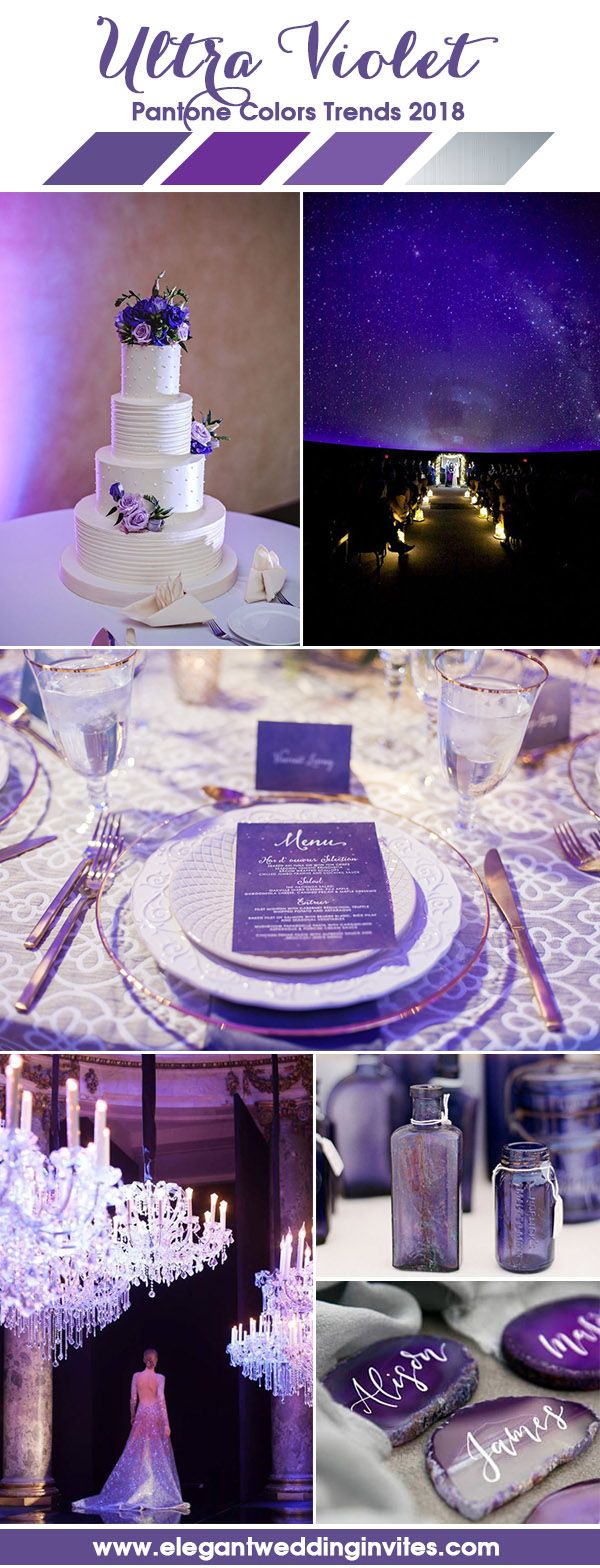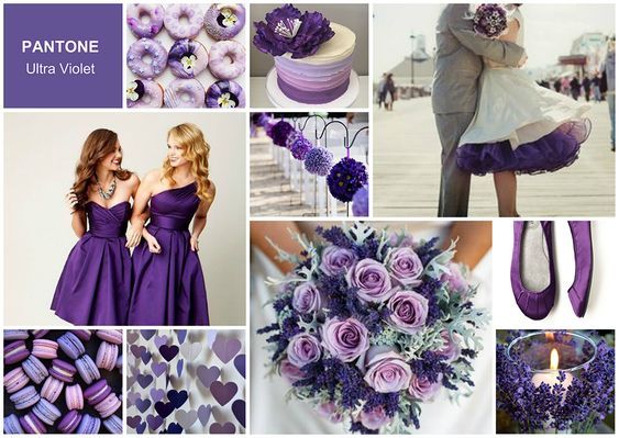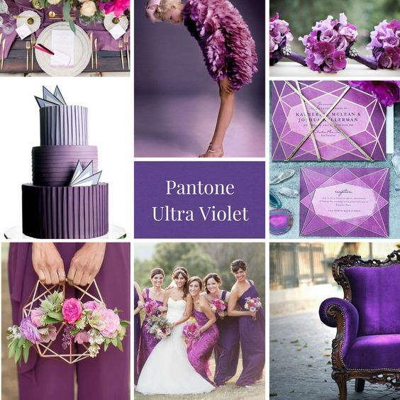 Конечно, следовать модному цвету или нет — решение за вами. Но вы всегда можете внести в свое торжество изюминку в виде акцентов модного в этом году ультрафиолетового цвета.